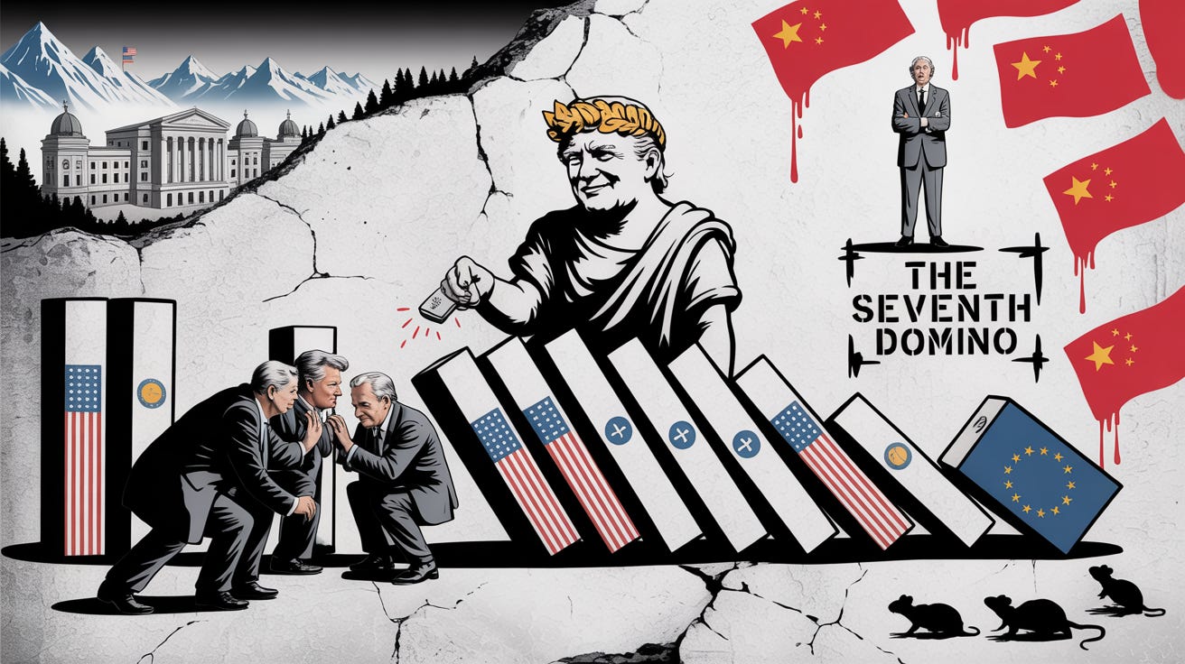 Now, let me tell you what actually happened in Davos. Because while Trump was attacking Switzerland, the seventh domino fell.