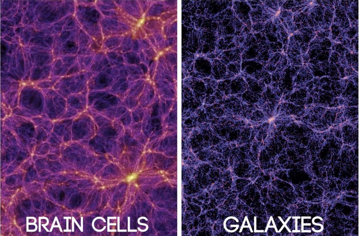 The galaxies and stars? They’re like synapses and pathways, transferring light and energy just as neurons fire and transmit signals. The same way your thoughts connect within your brain, the universe might connect through us.