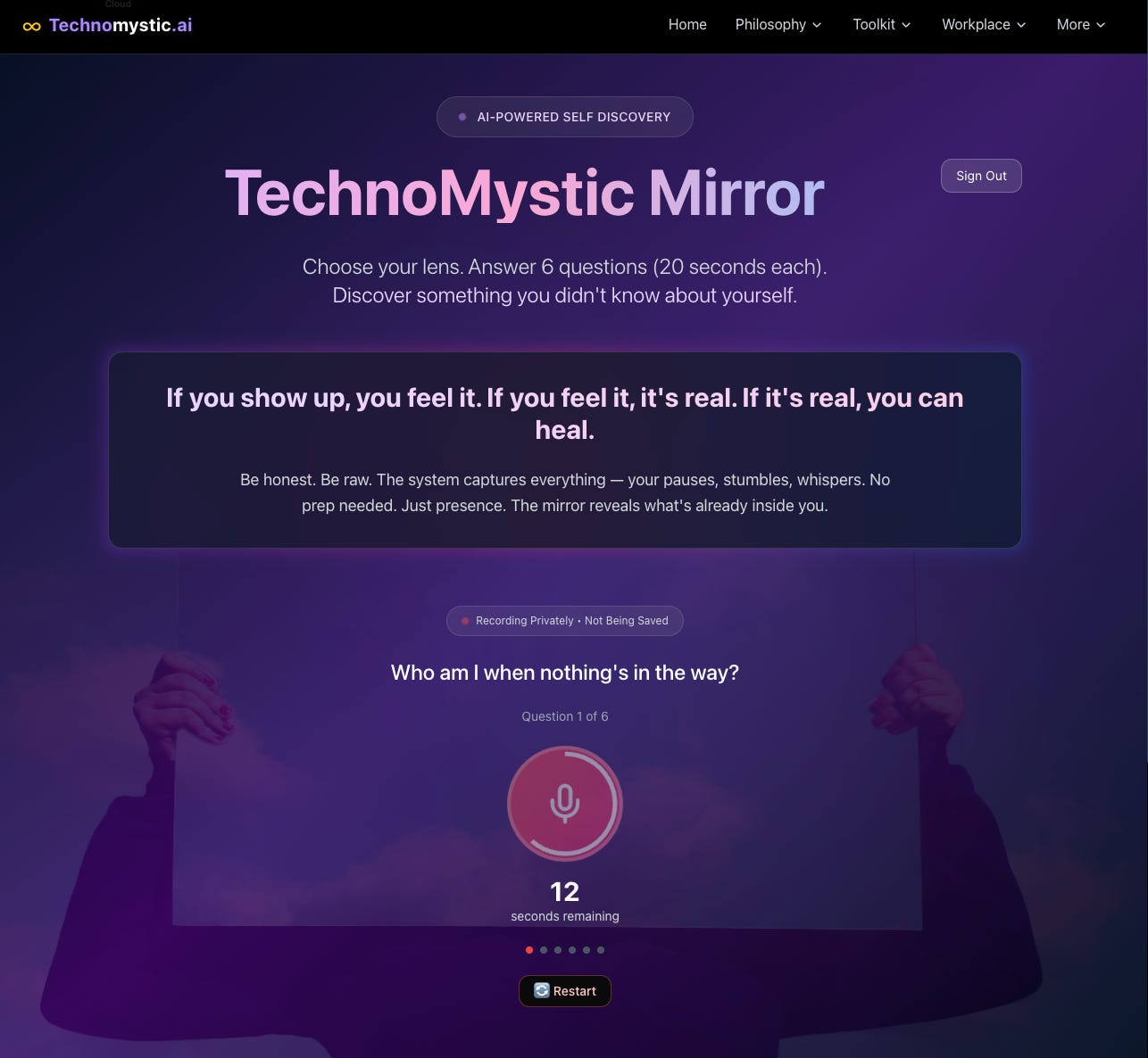 This is the practice I call technomysticism: showing up, feeling what’s real, letting fire burn what must, and building from the ashes.